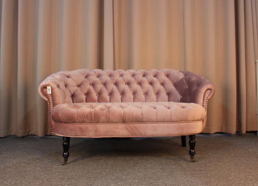 Vintage style tufted button sofa wing sofa with velvet fabric living room furniture wooden sofa Images |